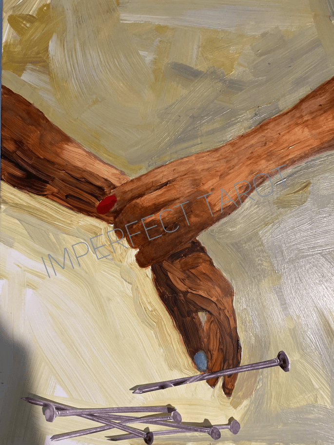 After the challenges of the 5 of Nails, it is easy to feel as though we cannot trust anyone– especially ourselves. We may feel like giving up entirely, and it can be very difficult to ask for help. When pulling this card, you may feel as though you cannot see the light, but there is one, no matter how far it may appear. There are people to catch you when you feel as if you’re endlessly falling. This is a good time to call on your spirit guides, well ancestors, higher self, therapist, friends, and chosen family to hold space for you and help you to keep from completely numbing out.